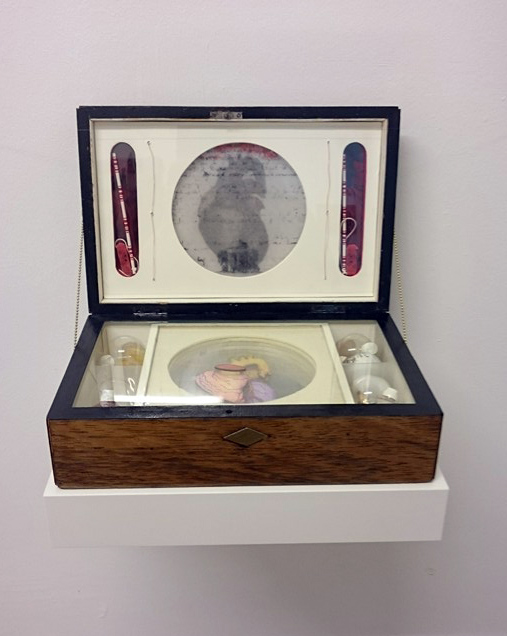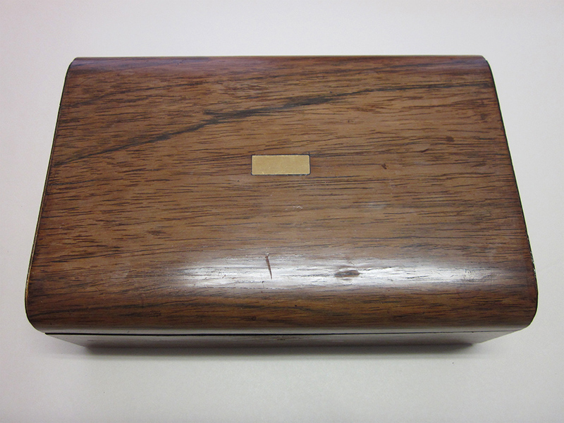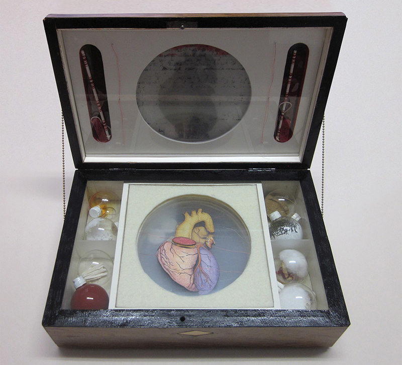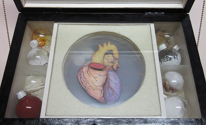 The Japanese word “Kokoro” (心) means “heart” and that’s the theme for this box. The center portion was made by sandwiching cutout portions of a drawing of the heart between sheets of acrylate, creating a depth effect.