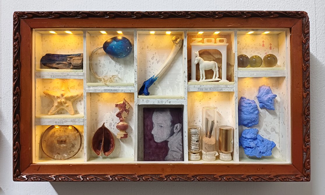 Of the three works I made for the “Present 2025” exhibition (which had a “points of light” theme) this one is least directly related to actual “light”. However, it’s still illuminated by a string of small LED christmas lights.