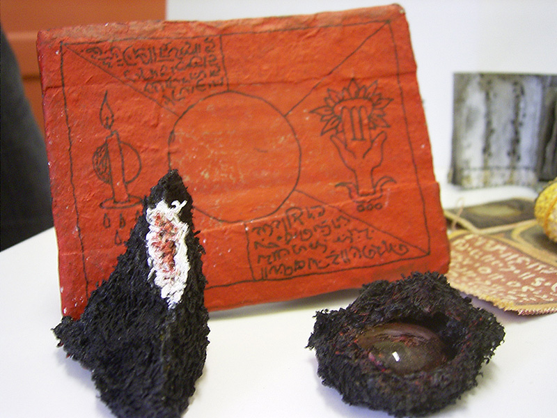 Together with my podmate Steph Harmon I started an exchange project titled “Temple Objects”. We made a bunch of objects, sent them to each other and took them for further inspiration. Sadly we never finished it, but who knows – perhaps we’ll pick it up in the future? Most of the works pictured below were made in collaboration, by Steph or by me.